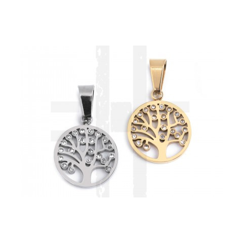 Medál orvosi acélból élet fája csiszolt kövekkel