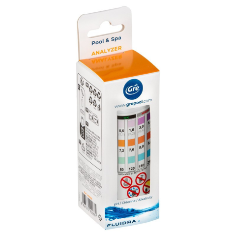 A vízelemző használatával beállíthatja medencéje megfelelő klórtartalmát, ideális PH-értékét és lúgosságát. Leírás Ez az indikátorpapíros változat 50 db méréshez elegendő.Az indikátorpapírt mártsa a medencevízbe, majd olvassa le a kapott értékeket és