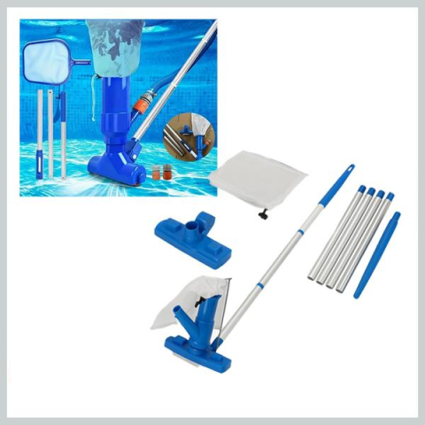 Medencetisztító vákuum szett hálós fejjel – teleszkópos nyéllel AK2400367Ez a komplett, kézi medencetisztító szett ideális választás kisebb és közepes méretű kerti medencék, felfújható vagy merev falú medencék karbantartásához. A praktikus, szűrőhálós vákuumfej és a több részből összeállítható teleszkópos nyél lehetővé teszi a medence aljának gyors, egyszerű és hatékony tisztítását.Főbb jellemzők:Komplett szett: tartalmazza a vákuumfejet, szű