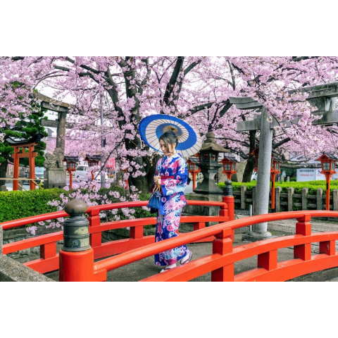 1 kép MÉDIA fotótapéta matrica, Híd virágzó cseresznyével, 220 x 135 cm