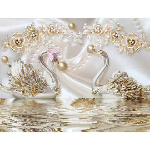 1 kép MÉDIA Tapéta, Hattyú, Arany virágok, 270 x 200 cm