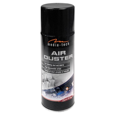 A Media-Tech sűrített levegővel az elektromos eszközök nehezen hozzáférhető részeiből (számítógép billentyűzet, nyomtatók, faxok, notebookok... stb.) eltávolítja a port és szennyeződést, így csökkentheti a rövidzárlat veszélyét. környezetbarát, 100