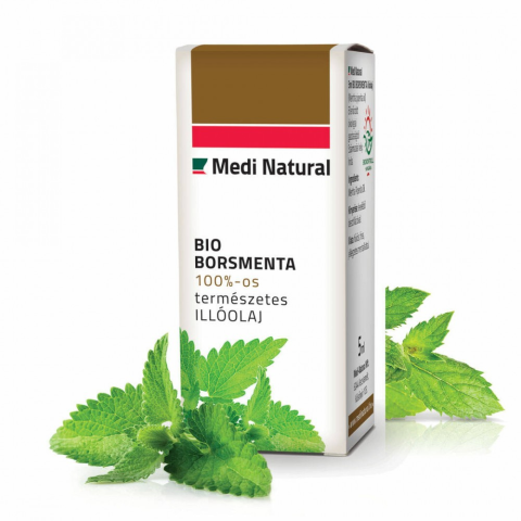 MediNatural Bio Borsmenta illóolaj (5ml) Különösen magas mentoltartalmú illóolaj! Hűsítő, nyugtató, összehúzó, gyulladáscsökkentő tulajdonsága és kellemes, üde, friss illata miatt kozmetikai készítményekbe hatóanyagként előnyös az alkalmazása. MediN