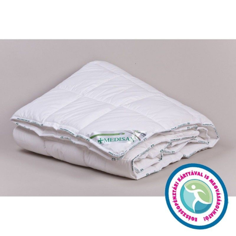Medisan paplanA Naturtex Medisan Duo paplan különlegessége, hogy 2 db 600g-os paplan van összevarva, így a hideg téli éjszakákra kitűnő választás.A Medisan termékcsalád 95C° fokon mosható anyagokat tartalmaz, kórházi, betegápolási illetve magasabb higiéniai igényeket követelő célokra alkalmazható.A Medisan termékek fedőanyaga és töltete is úgy lett kialakítva, hogy bírja a magas hőmérsékleten történő "fertőtlenítő" mosást, ugyanis magas hőmérséklet