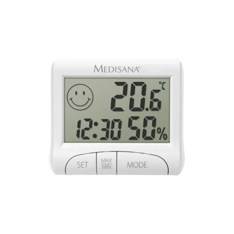 Medisana HG 100 hőmérő Medisana HG 100 hőmérő Beltéri hőmérséklet és páratartalom kijelzése, az egészségesebb levegőminőségért. Tulajdonságok: Legmagasabb és legalacsonyabb érték mentése Komfortzóna kijelzése (smiley): optimális egészséges, vagy egés
