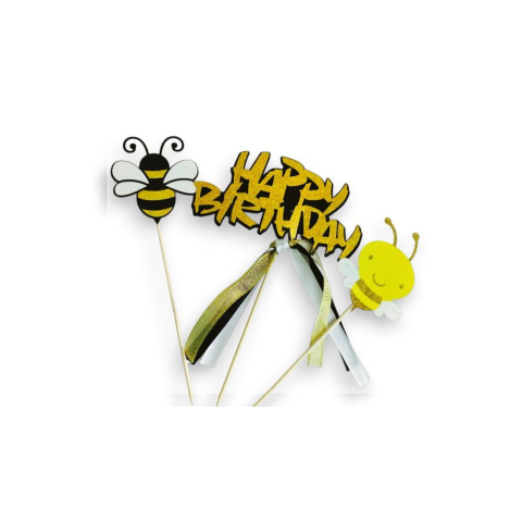 1 kép Méhecskés Happy Birthday szülinapi tortabeszúró, 3 részes