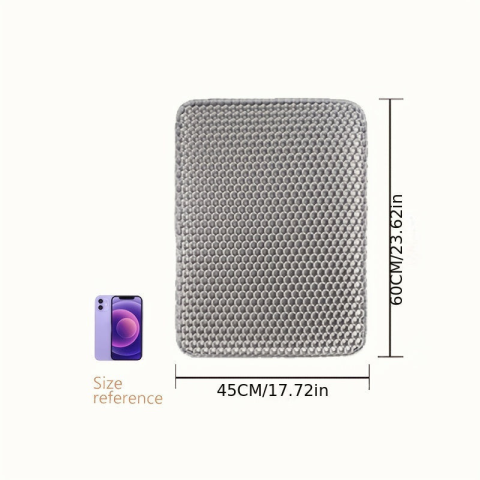 Méhsejt mintájú kétrétegű szőnyeg macskaalomhoz, 45x60 cm Ez a kétrétegű szőnyeg macskaalomhoz tökéletes választás azoknak, akik szeretik a tisztaságot és praktikusságot. A nem csúszó és mosható macskaalom szőnyeg ideális kiegészítője az állat WC-nek