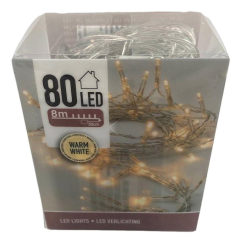 MELEG FEHÉR FÉNYFÜZÉR, 80 LEDES karácsonyfa izzósor 1 kép