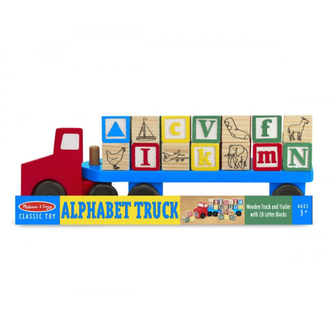 A klasszikus játék továbbfejlesztett, „okosított” változata ez a fakockákat szállító teherautó. A 28 darabból álló szállítmány között találsz nagy és kisbetűket, mindezt a tömör fából készült teherautón felpakolva. Pakold le a teherautóról a kockákat, épí