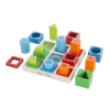 Szín-, forma- és méretfelismerő, -válogató játék, mely a matematikai alapok elsajátítását segíti. Nincs is jobb módja ennek, mint ez a játék, színes, kiváló minőségi fa építőelemekkel, amik akár egymásba is illeszthetőek. Ismerd fel a színeket, formákat,