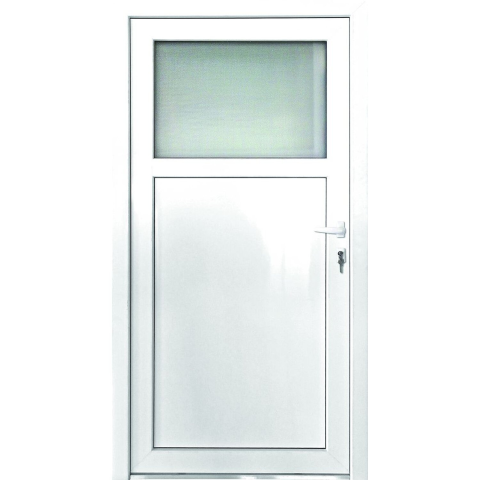 PVC mellékbejárati ajtó, 98 cm x 208 cm-es méretben, jobbos kivitelben. A kilincs és a zárbetét nem tartozék.