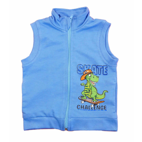 Mellény, Dínó mintával Fedezd fel a stílus és a kényelem tökéletes egyensúlyát a dinó mintás Mellényünkkel! Ez a különleges darab nemcsak divatos, hanem rendkívül praktikus is, hiszen a zippzáras elülső rész megkönnyíti a fel- és levételt. A 100% pamut an