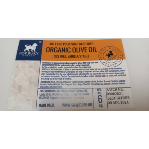 Melt & Pour szappanalap Forbury Olívaolajos 1kg SLS mentes Vanília stabil. (vanília illatolaj nem színezi el) Opálos fehér. Címkézési elemek Címkézés a (EK) 1272/2008 (CLP) számú Rendelete szerint - Figyelmeztetés veszély - Piktogramok GHS07 - Fi