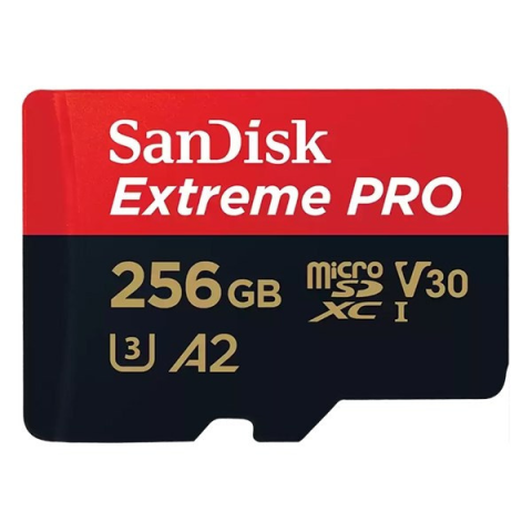 Memóriakártya SANDISK microSDXC Extreme PRO U3 V30 256 GB + adapter Ez a cserélhető microSD tárolóeszköz lehetővé teszi az adatok gyors írását , olvasásátés törlését Különösen ajánlott mobiltelefonok, okostelefonok és tábla PC-k számára MicroSDXC fo