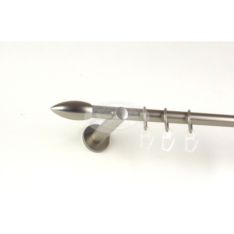 A MEMPHIS 120 cm-es nikkel-matt színű 1 rudas, modern tartós fém karnis szett tartalma: 1 db 120 cm-es nikkel-matt színű 16 mm átmérőjű fém karnisrúd 2 db Memphis típusú nikkel-matt színű végzáró 2 db falra szerelhető modern fém konzol 12 db fém karika m