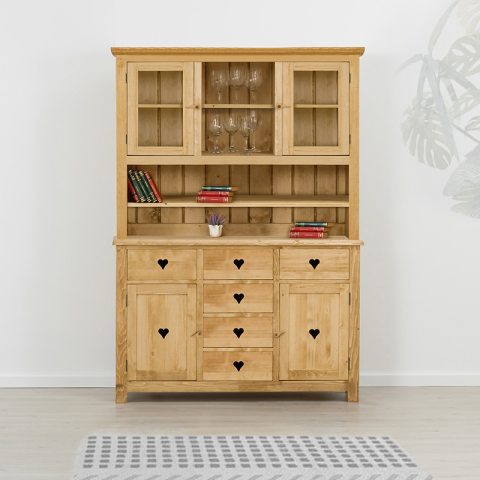 Teljes Mengeve fenyő tálalószekrény – 4 ajtós, 6 fiókos, 4 nyitott polccal termékleírás