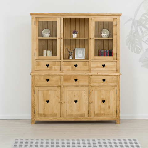 Teljes MENGEVE fenyő tálalószekrény – 5 ajtós, 6 fiókos, 2 nyitott polccal termékleírás