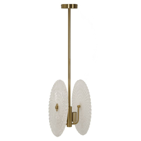 Elegáns, kétszintes mennyezeti lámpa üveg árnyékolóval - 35x18x80 cm Ez a stílusos mennyezeti lámpa tökéletes választás modern és elegáns otthonokba. A két fényponttal ellátott arany fém szerkezet és az elegáns, domborművel díszített üveg árnyékolók...