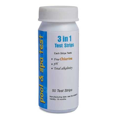Mérőcsík készlet 50 darabos csomagban, szabad klór, lúgosság és pH mérésére. Használata: Merítse be a csíkot. Vegye ki a párnákkal felfele fordítva. NE RÁZZA LE. Azonnal olvassa le. Szabad klór-Bróm /ppm Túl alacsony=0(0) Alacsony=0,5(1) Ideális=1(3)-3(