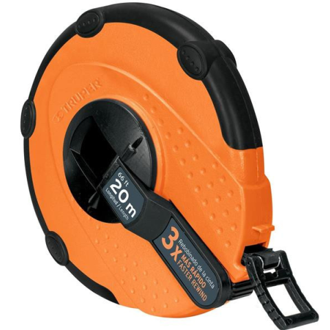 Ütésálló PVC borítás 3x gyorsabb visszatekerési sebesség Mindkét oldalon nyomtatott szalag Behajtható fogantyú Ideális az építőiparban és földmérésben Hossz: 20 m Szélesség: 14 mm TRUPER TP20ME Üvegszálas gyors csévélésű földmérő szalag, 20 m (12638) I