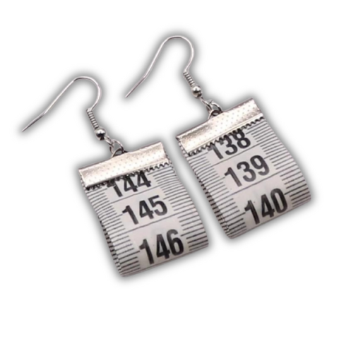 Egyedi mérőszalag fülbevaló beakasztós kivitelben. Stílusos és vicces ékszer kreatív embereknek és divatrajongóknak