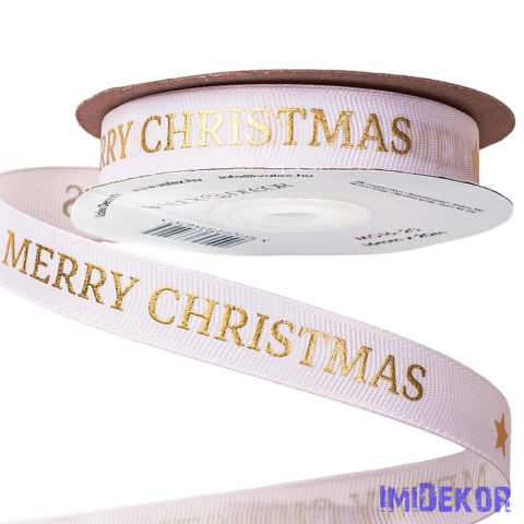 Merry Christmas feliratos ripsz szalag 16mm x 20m - Fehér szalag, masni árgrafikon
