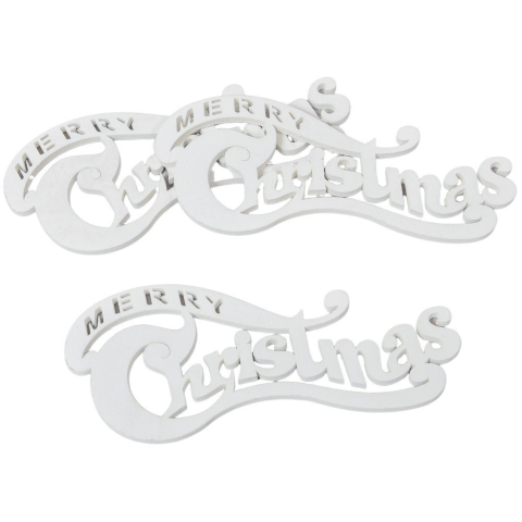 Merry christmas íves felirat fa fehér 20cm 3db-os