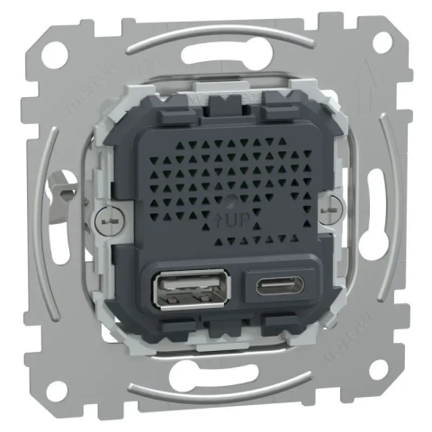 Schneider Villanyszerelői zsebkönyv 2026 A Schneider Electric Merten betét USB-A és USB-C PD PPS töltőt, 21 W-os kimeneti teljesítményt kínál. Bármilyen beltéri környezetben fali tápegységként használható. Ez a töltő fejlett töltési technológiával, US