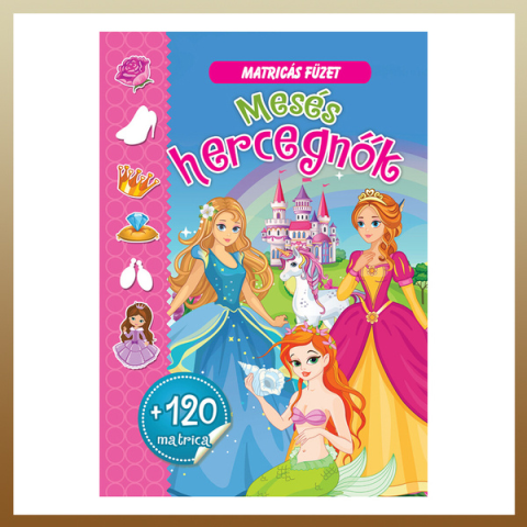 Segítsd elmesélni az álomszép Hercegnő történetét! Keltsd életre a képeket a szereplőkkel, és díszítsd fel a helyszíneket! Csak rajtad múlik, hogy az oldalakon hová ragasztod az oda illő matricákat, így te komponálhatod meg a képeket, és elkészítheted a saját, egyedi mesekönyvedet.