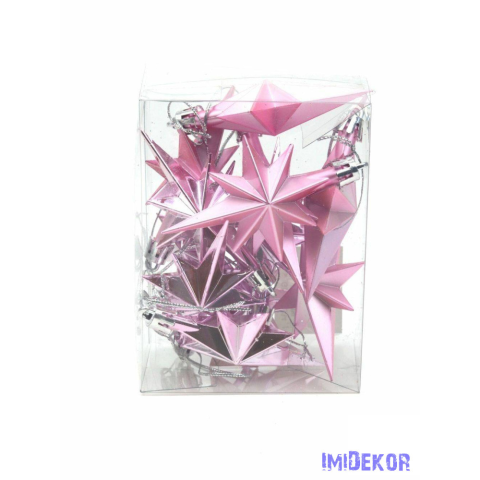 1 kép Metál csillag szett akasztós 12db/csomag - Rózsaszín