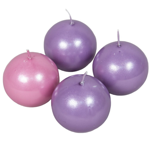 Metál gömb gyertya 60mm lila3 rózsaszín1 4db/csom (db ár)