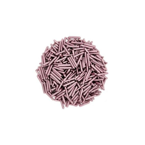 19.600 Ft/kg Metál pink színű pálcikákból álló, tortadíszítő cukorka, amelynek hossza kb. 2 cm. 50 g/csomag