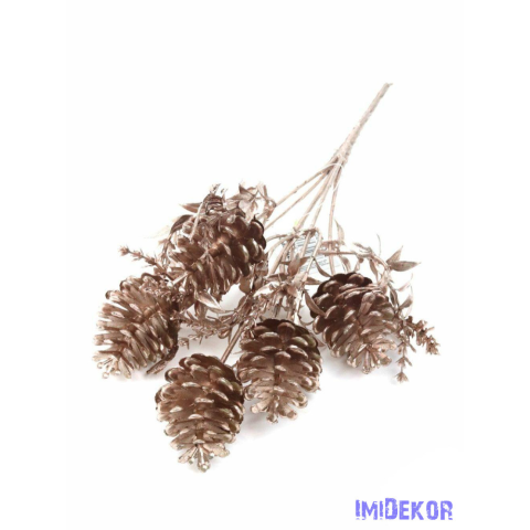 Metál tobozos díszítő csokor 33cm - Rosegold karácsonyi dekoráció 1 kép