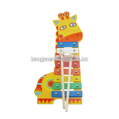 Ajánlott: 2-8 éves korig Termékméret:33x15x1,2cm Dobozméret:34,5x16,5x3,5cm Fából készült zsiráfos metalofon 8 darab színes fémlappal. Lehetőséget nyújt a zenélésre már olyan gyermekek számára is, akik még csak most ismerkednek a hangszerekkel. Egyszer