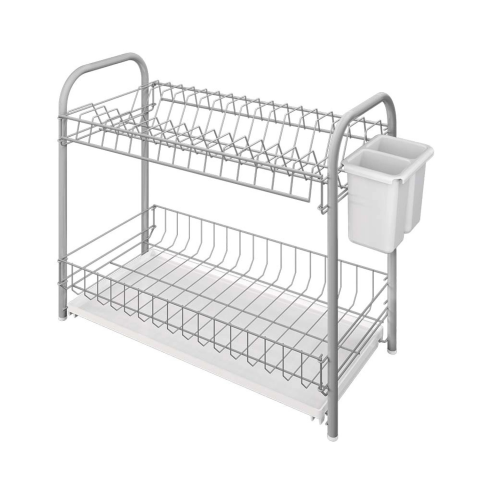 Metaltex Double Tex két emeletes edényszárító. A konyhapulton sokszor nem elég a hely, ezzel az edényszárítóval viszont felfelé terjeszkedve praktikusan használhatjuk ki a rendezkezésre álló helyet. Evőeszköztartója szabadon mozgatható. Csúszásgátló lábakkal. Színe: szürke. Mérete: 45 cm x 23 cm x 37 cm.