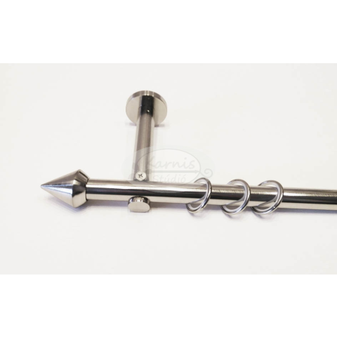 A METZ 1 rudas, 240 cm-es fém karnis szett tartalma: 1 db 19 mm átmérőjű, 240 cm hosszú fém karnisrúd (fényes inox színben) 2 db Metz típusú fém karnis végzáró 3 db falra szerelhető fém konzol 24 db szilikon betétes fém karika (ún. csöndesgyűrű) ráncszed