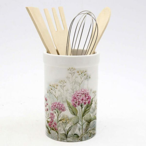 Mezei virágos kerámia fakanáltartó eszközökkel