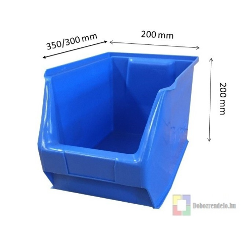 Tartós és kopásálló műanyagból készült tárolódobozok. Alkalmasak csavarok, apró alkatrészek, szerszámok tárolására. Sav- és lúgálló anyagból készülnek. - Mérete (mm): 350/300x200x200 - Űrtartalma (liter): 14 - Tömege (gramm): 710 - Max.terhelhetősége (kg)