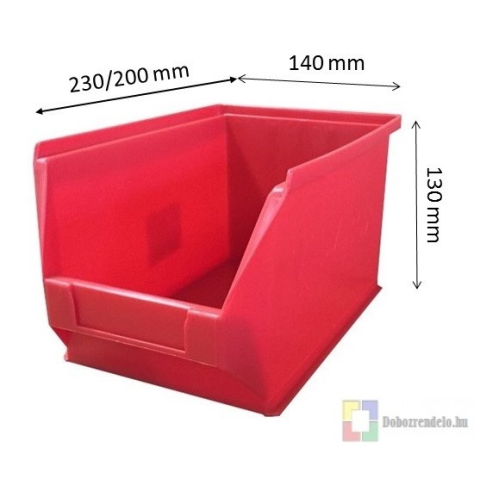 Tartós és kopásálló műanyagból készült tárolódobozok. Alkalmasak csavarok, apró alkatrészek, szerszámok tárolására. Sav - és lúgálló anyagból készülnek. - Mérete (mm): 230/200x140x130 - Űrtartalma (liter): 4 - Tömege (gramm): 240 - Max.terhelhetősége (kg)