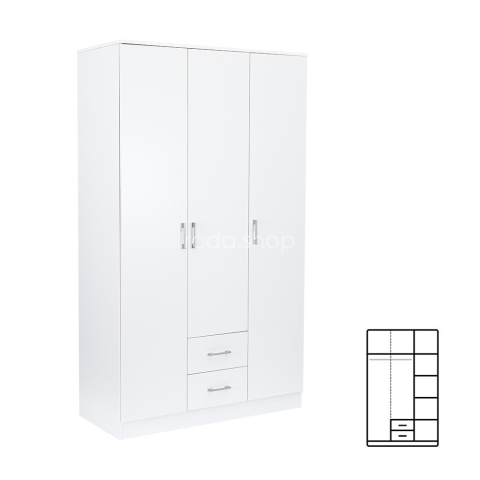 Miami gardróbszekrény 120x205 cm fehér-fehér
