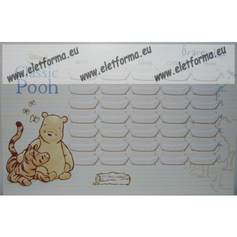 Micimackó órarend, nagy (24x16 cm). Pontos mérete: 23,8 cm X 15,6 cm. Kétoldalas, a fenti kép szerinti 2 db kép van a két oldalon.