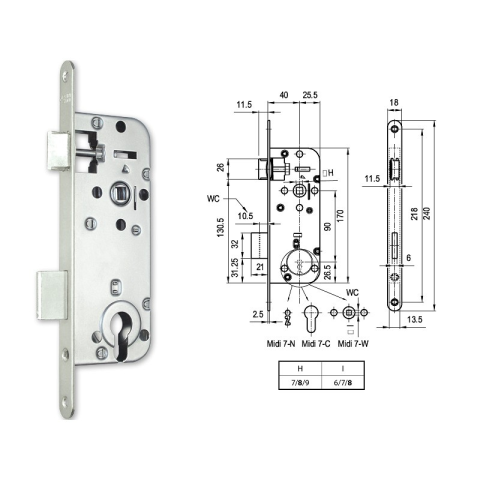 1 kép Midi 7-C cilinderes bevésőzár Euro Elzett
