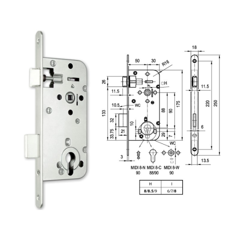 Zárbetét működtetésű, kétcsukású, váltós bevéső zár. Egyszerű csapdaátállítás. Kivitel: kerekített előlap: horganyezüst felületkezelés. Zárszekrény: natúr. A zártesten lévő DIN átmenő furatok lehetővé teszik osztott és biztonsági veretgarnitúra felszerelé