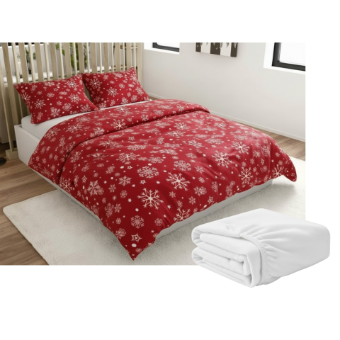 1 kép Mikroplüss ágyneműhuzat szett SNOWFALL piros + mikroplüss lepedő SOFT 180x200 cm fehér, franciaágyra