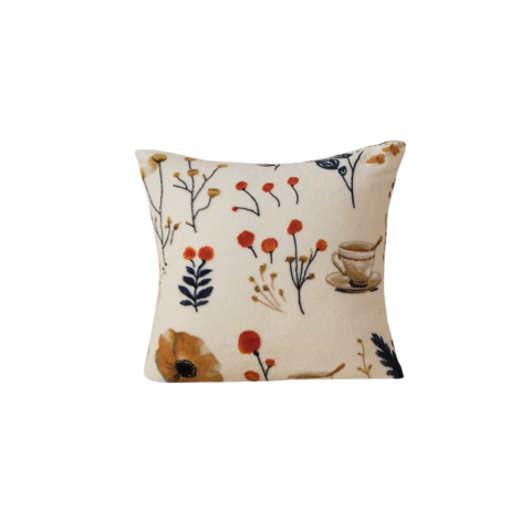 A PAPAVA 45 x 45 cm-es Mikroplüss párnahuzat azonnal megragadja a figyelmet a finom krémszínű alapon és a vidám virág és kávéscsésze motívummal.