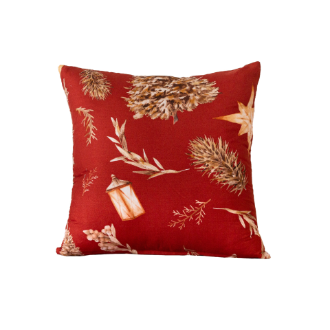 A GOLD CHRISTMAS 45 x 45 cm piros kialakítású Mikroszálas díszpárnahuzat melegséget és ünnepi hangulatot kölcsönöz otthonának. Arany csillagok, tobozok, ágak és lámpások motívumaival díszített, amelyek gyönyörűen kiemelkednek az élénk piros alapon, és felidézik a téli ünnepek varázsát.
