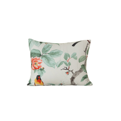 Mikroszálas párnahuzat PETALIA 40 x 50 cm-es méretben, finom természetes virág-, levél- és madármotívummal, világos alapon vonzza a tekintetet. A zöld, rózsaszín és sárga árnyalatok frissességet és vidámságot kölcsönöznek a belső térnek, így ideális választás tavaszi és nyári időszakra.
