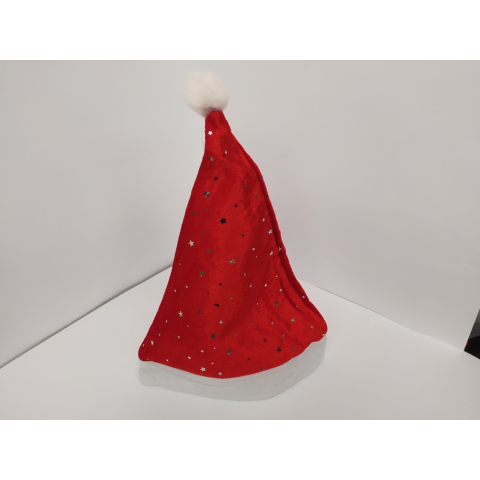 Mikulás sapkája. Karácsonyi, téli dekorációkhoz vagy beöltözéshez. Fehér ponpom és szegély szőrméből készült.Méret: 40x30cm