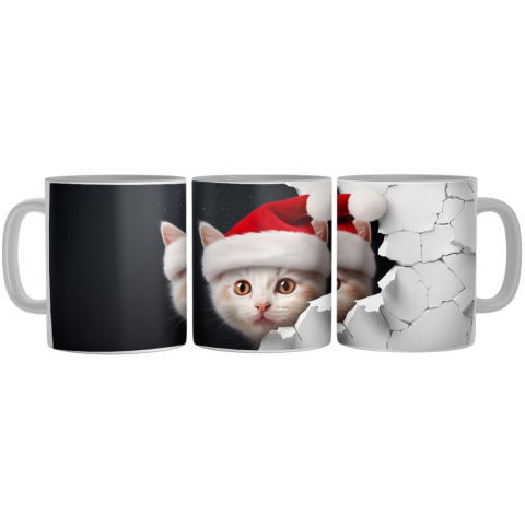 Mikulás sapkás bújkáló kiscica - Bögre bögrék, csészék 1 kép