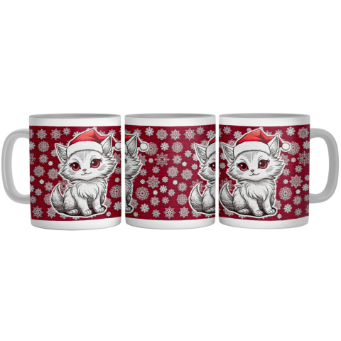 Mikulás sapkás cartoon cica - Bögre